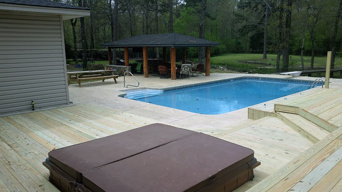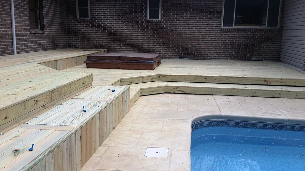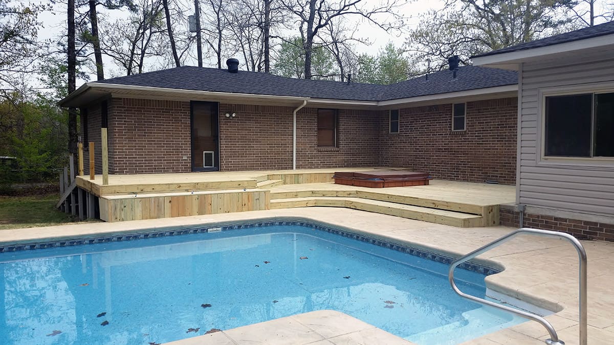 This family wanted to add extra space for family functions as well as storage for pool toys the children can enjoy. They had a basic shape design in mind and with a touch of the Decks & More Teams added styles they received stair features and creative storage bench designs to make their dream project a reality!